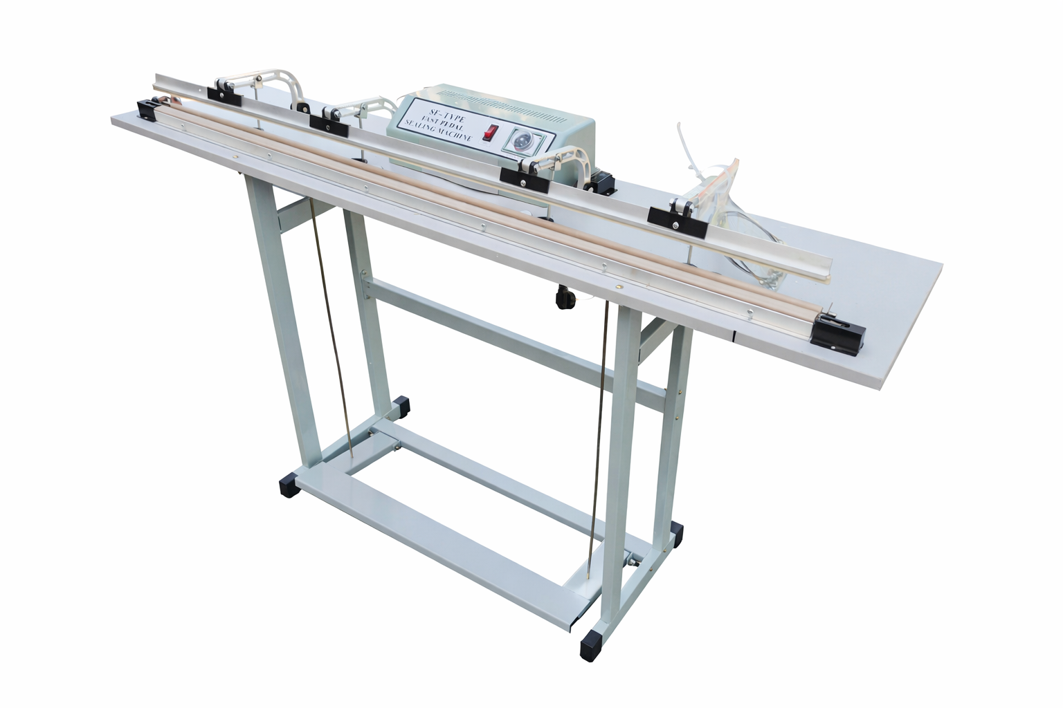 Zgrzewarka nożna impulsowa o szerokości 1400 mm. Służy między innymi do zgrzewania opakowań foliowych np. woreczki, saszetki, folia bąbelkowa itp. Zgrzewarkę można stosować również do innych materiałów, które łączą się pod wpływem temperatury. Cechuje ją bardzo prosta obsługa, zgrzewarka nie wymaga nagrzewania! Urządzenie posiada regulator czasu zgrzewania, który gwarantuje zawsze taki sam mocny i wytrzymały zgrzew.